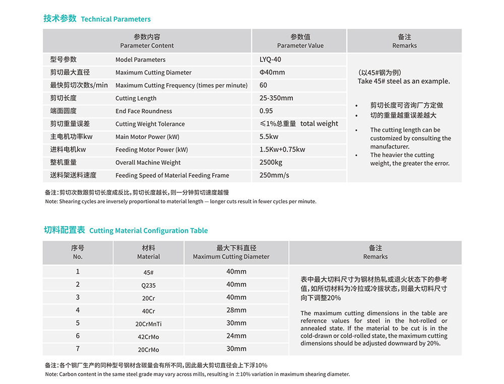 • 优化的挡料机构使下料重量偏差小、断面平整度高