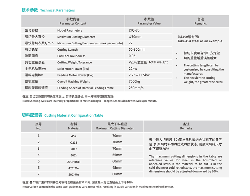 优化的挡料机构使下料重量偏差小、断面平整度高