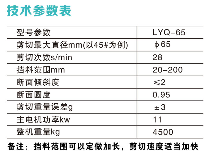 rn· 设备采用自动对中心装置,切断不同直径的圆钢无需再调整送料架高度